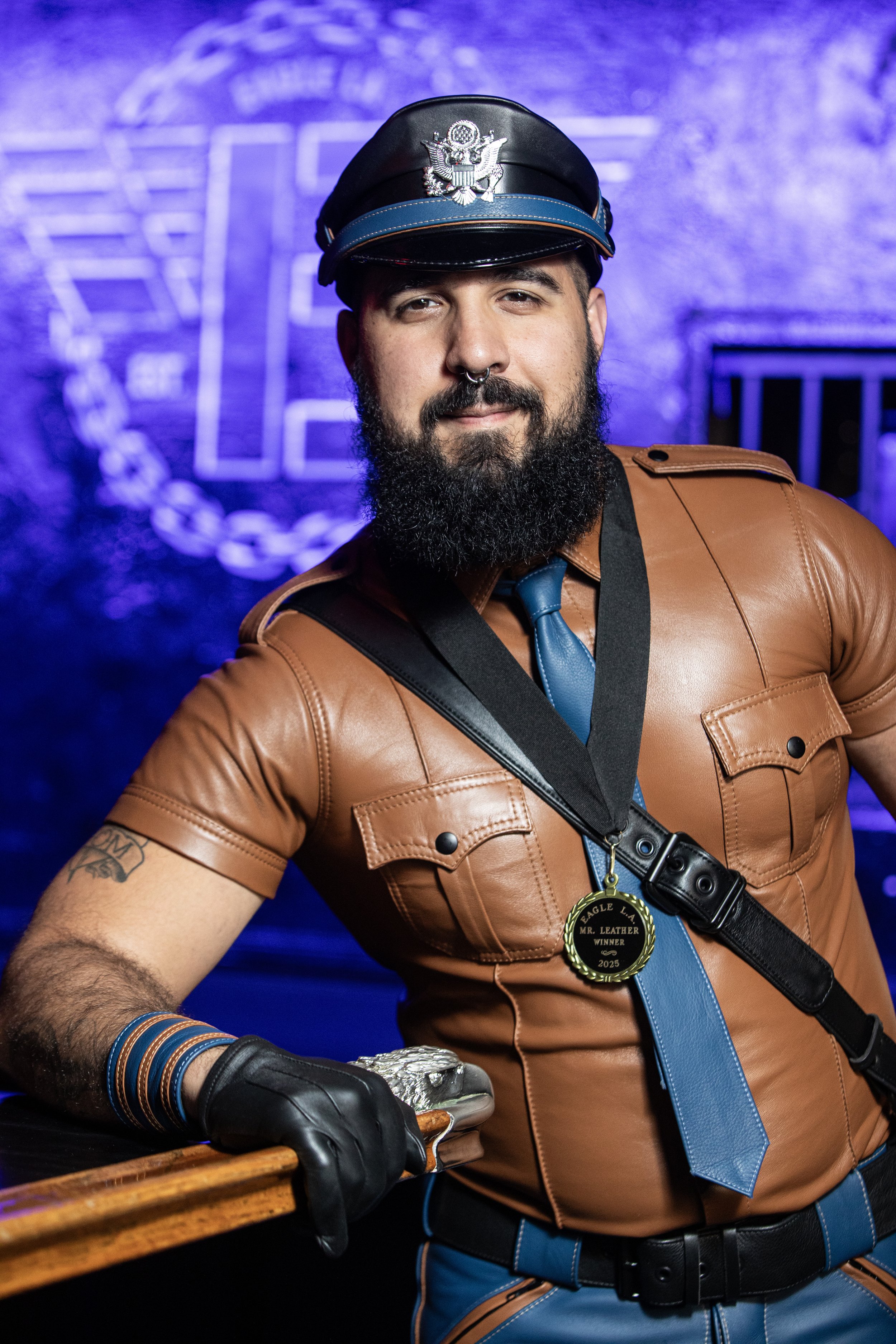 Matias Gomez Constenla was born in Argentina, raised in New York, and now calls Los Angeles home. Proudly serving as Eagle LA Mr. Leather 2025. Matias has organized fundraisers for the Wildfire Foundation and the Trans Wellness Center. His journey from immigrant roots to leather leadership is guided by the belief that leather is about visibility, service, and chosen family. Through connection, he strives to ensure everyone feels seen.